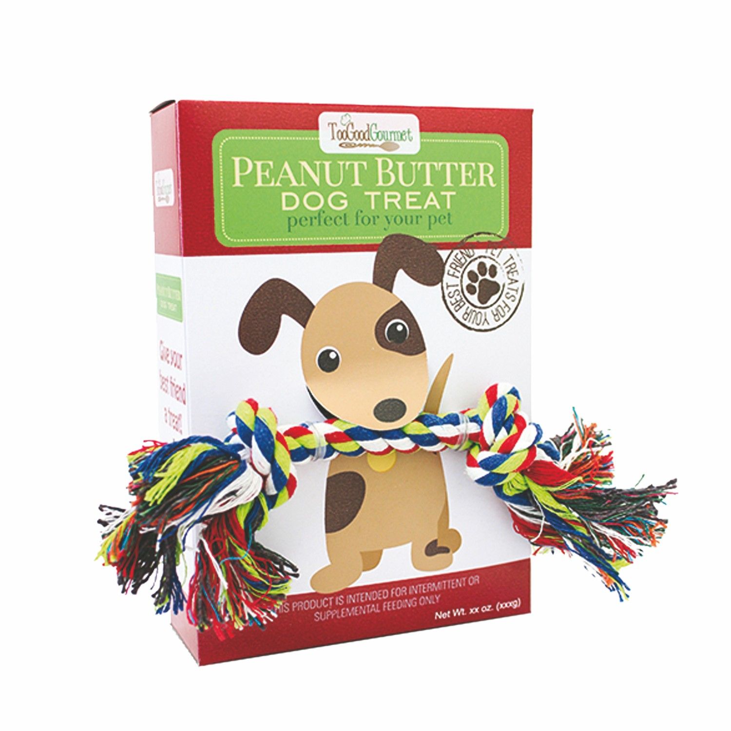 Treat your pup with an outstanding multi-purpose product with this peanut butter dog treat and rope toy box. 4 Oz. This dual-function giveaway comes with a box of dog treats and a bonus rope toy, ideal for playtime. What a great handout for pet stores, shelters, vets, and more! Available in assorted colors and can be customized with an imprint of your company logo and message for maximum brand exposure. 5.5" W x 8" H x 1.875" Diameter
